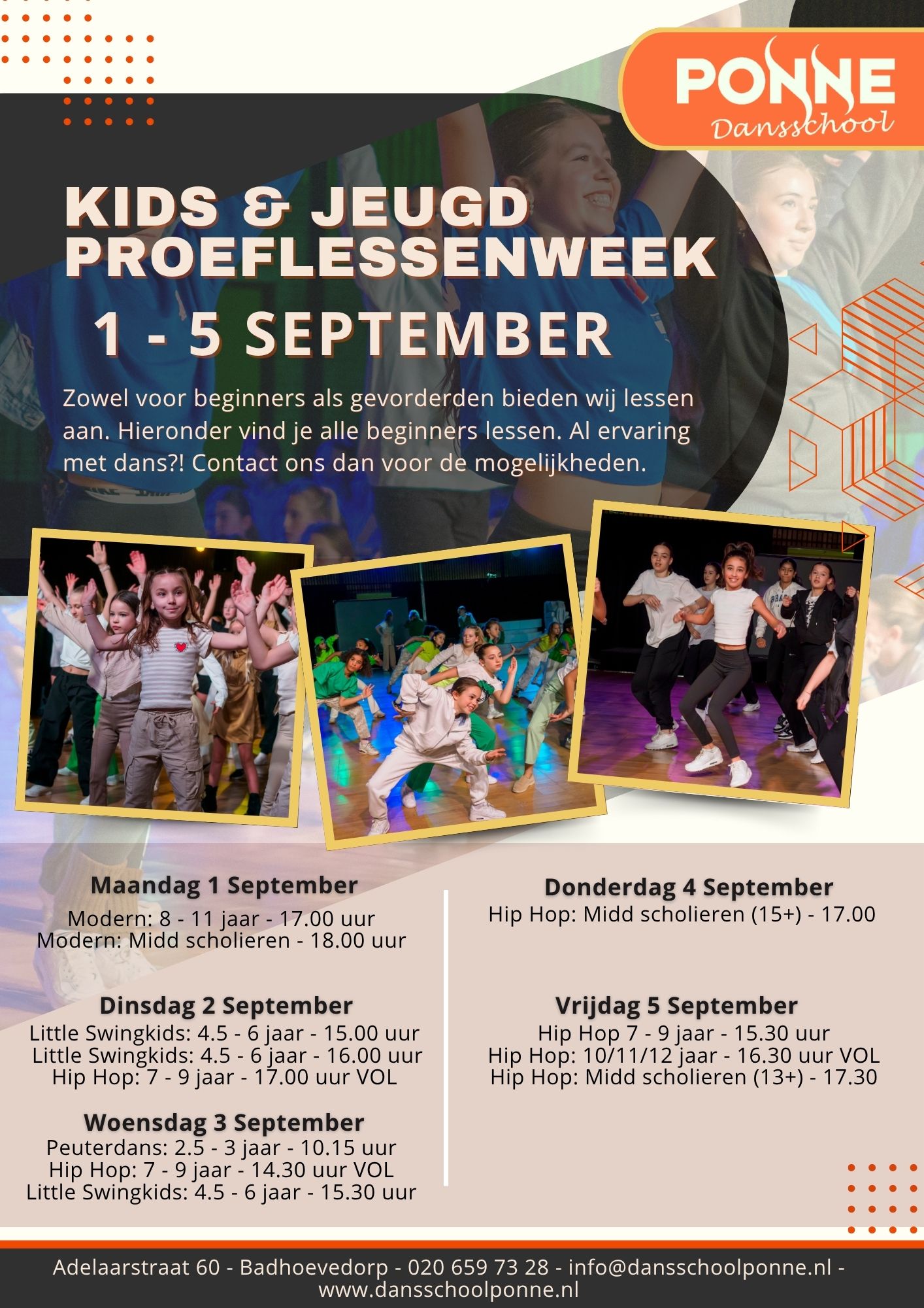 Hele gezellige dansschool die voor mij, na er jaren te hebben gedanst, echt voelt als een tweede thuis! Naast lekker de heupjes losgooien voor de lol is er ook doorstroom mogelijkheid naar de hiphop wedstrijdteams waardoor je veel kan groeien als danser. De dansschool zelf is ook nog is erg mooi om te zien en alles is er goed geregeld!